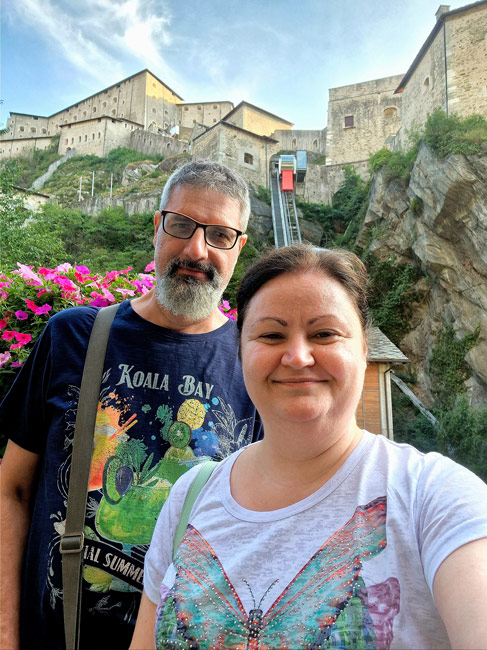 Sandra, il piccolo Hobbit, e Andrea, alpino nell’anima: compagni nella vita, viaggiatori da sempre.